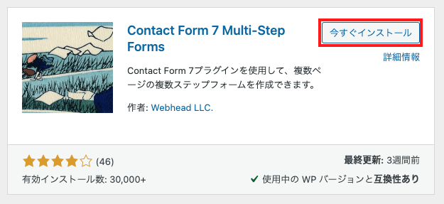これで、「Contact Form 7 Multi-Step Forms」プラグインが正常にインストールされ、WordPressのプラグイン一覧に追加されます。
