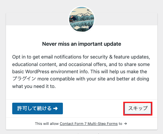 「有効化」するとこちらの画面が表示されますが、「スキップ」で大丈夫です。