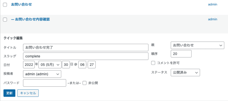 なのでまずは、確認画面とサンクスページの固定ページを作成しておきましょう。