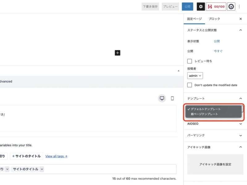 page-parent.php管理画面でテンプレート選択できるようにする。