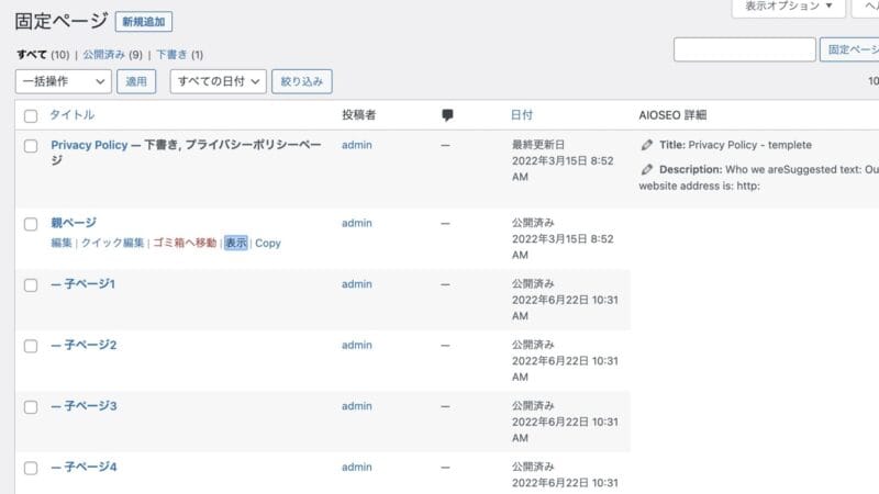 固定ページに子ページ一覧を表示させる方法を紹介しました。